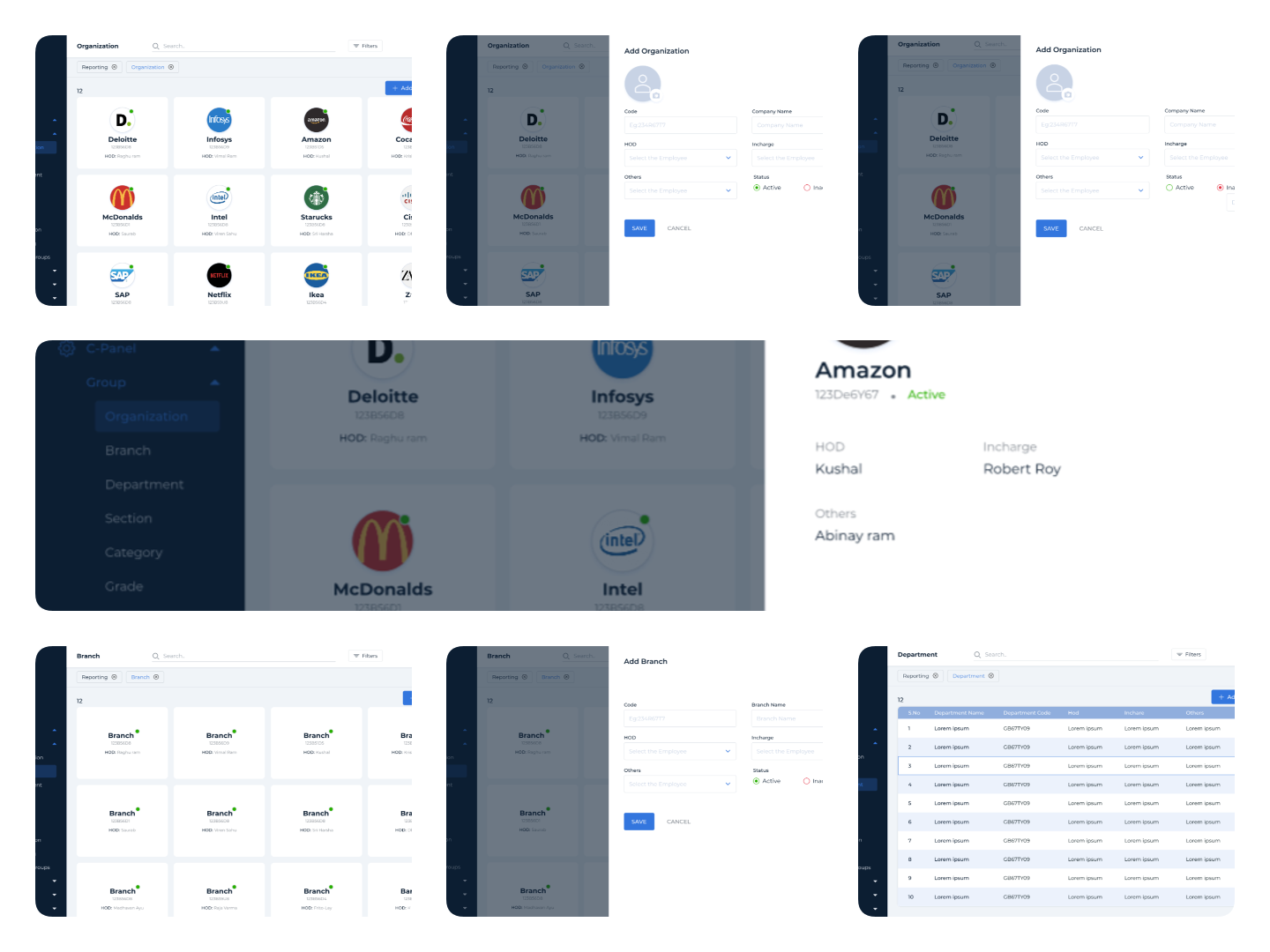 5 Dashboard to manage Users like Admin, HR and Employees etc..